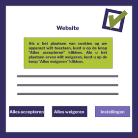 - Ontbreken van een knop van het type "alles weigeren" op hetzelfde niveau als de knop "alles accepteren". De meeste gegevensbeschermingsautoriteiten zijn van mening dat dit een inbreuk is en dat de gebruiker van een website tegelijkertijd de mogelijkheid moet hebben tot acceptatie of weigering van de plaatsing/lezing van cookies op zijn apparaat.